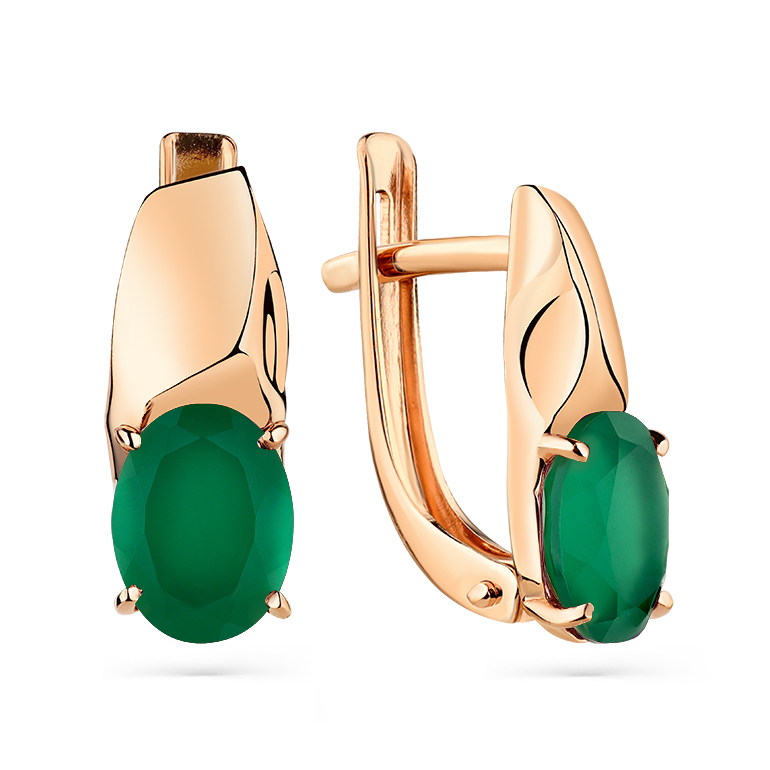 Серьги из золота с зелеными агатами