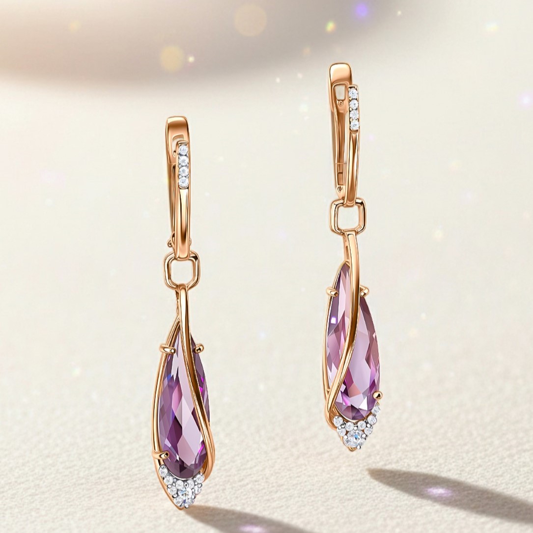 Серьги из золота с султанитами и фианитами