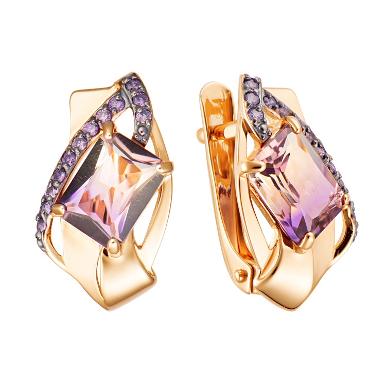 Серьги из золота с аметринами и фианитами