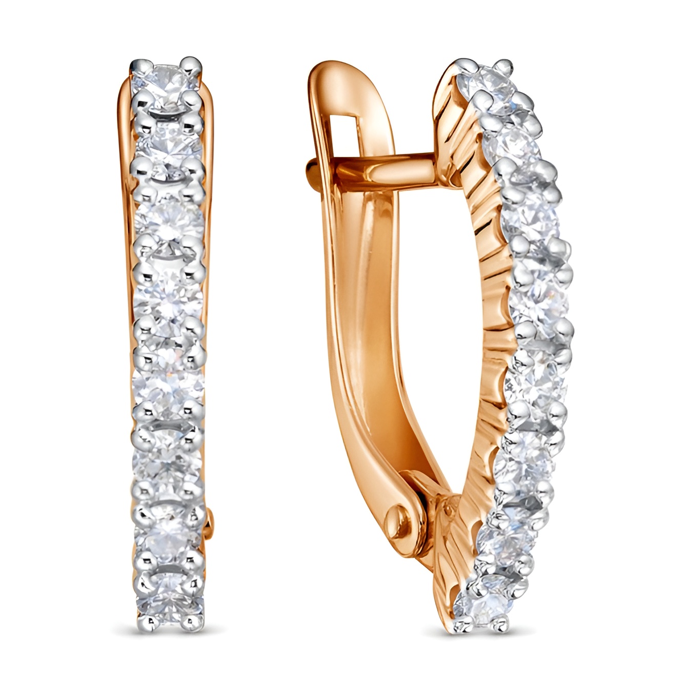 Серьги из комбинированного золота с "танцующими" бриллиантами