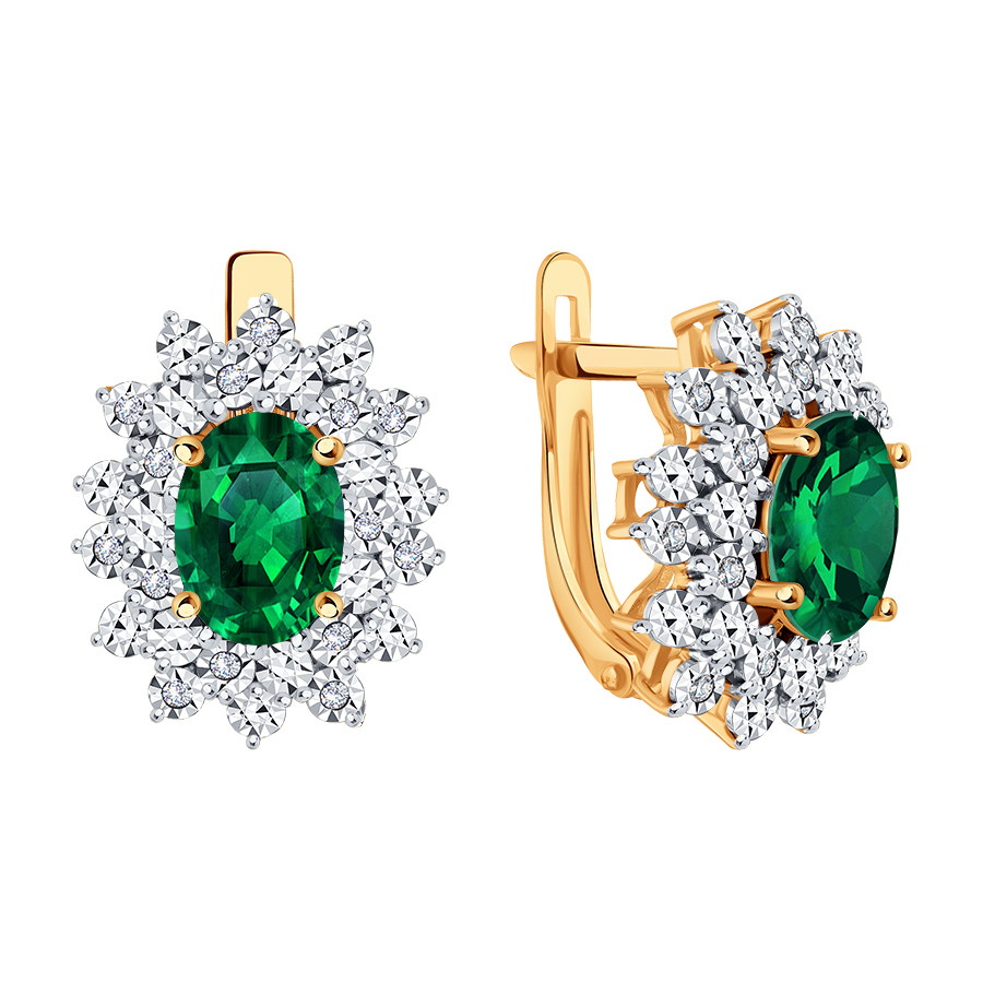 Серьги из золота с бриллиантами и изумрудами