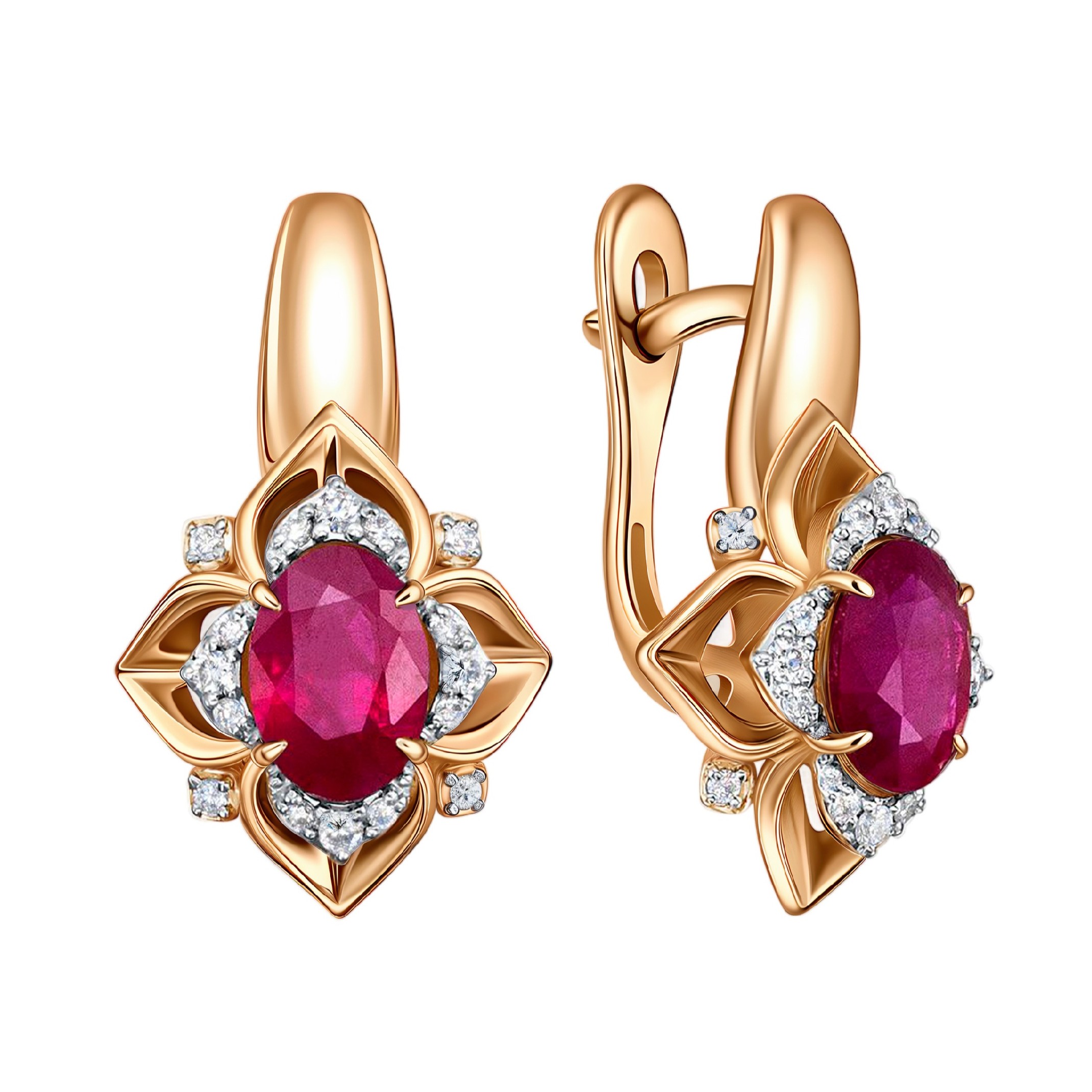 Серьги из белого золота с выращенными бриллиантами и рубинами