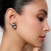 Асимметричные серьги из серебра с фианитами