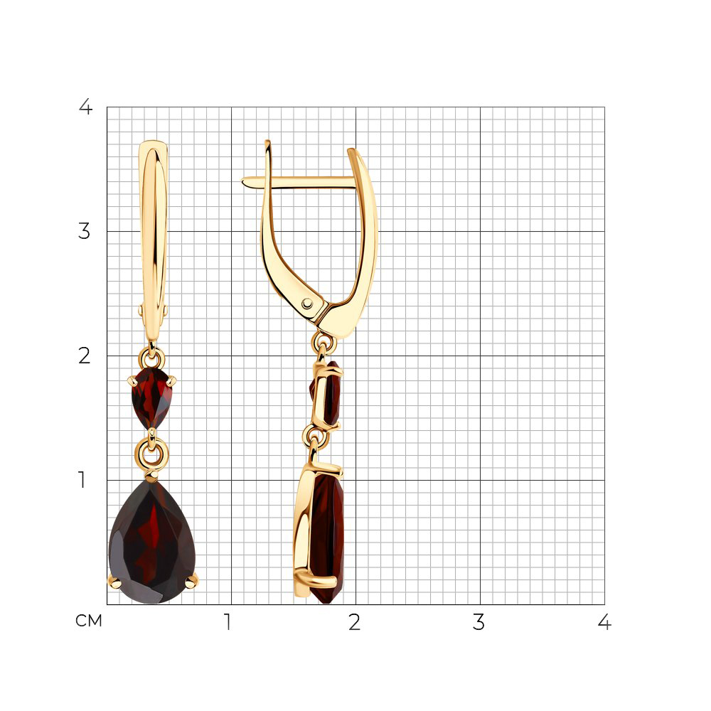 Серьги из золота с гранатами