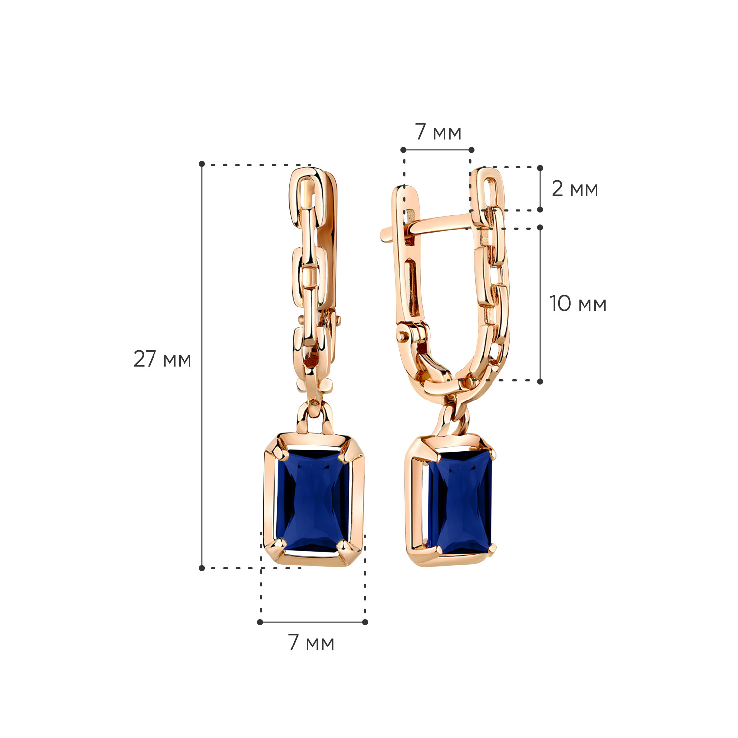 Серьги из золота с сапфировыми корундами