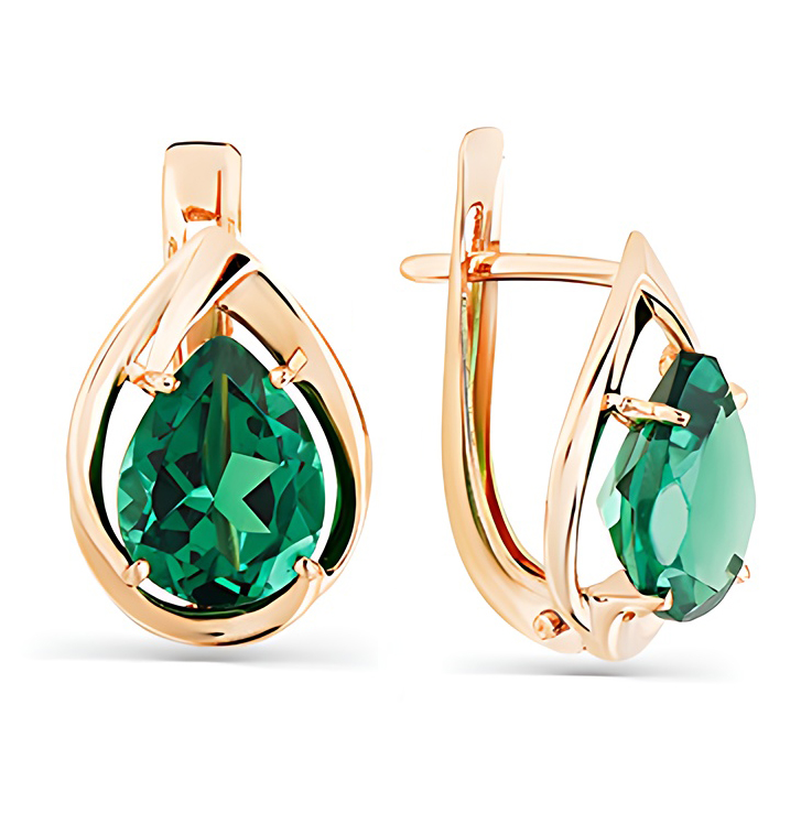 Серьги из золота с ситаллами изумруд и фианитами