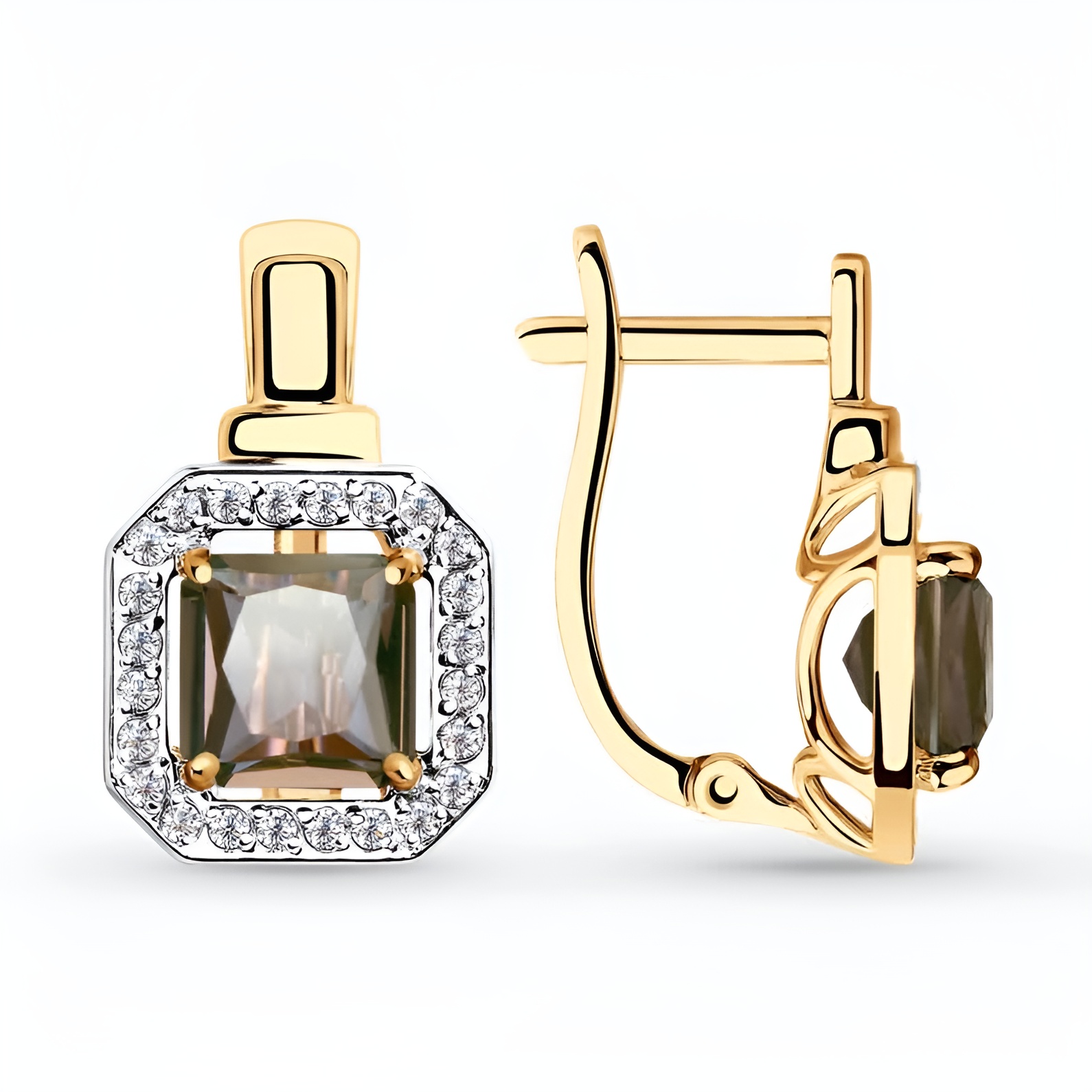 Серьги из серебра с раухтопазами, цитринами и фианитами