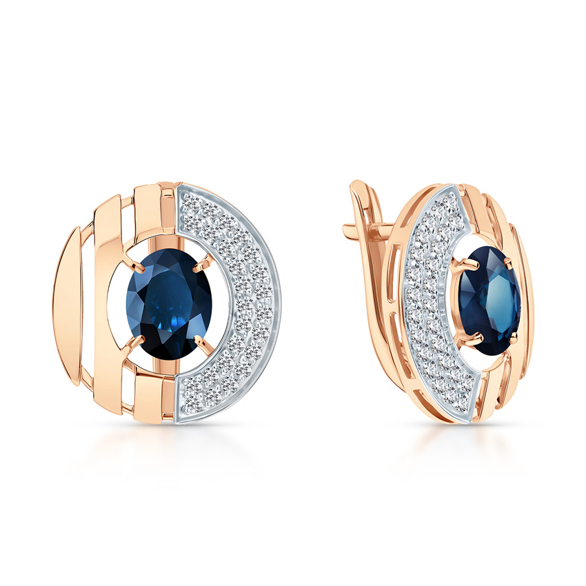 Серьги из золота с сапфировыми корундами и фианитами