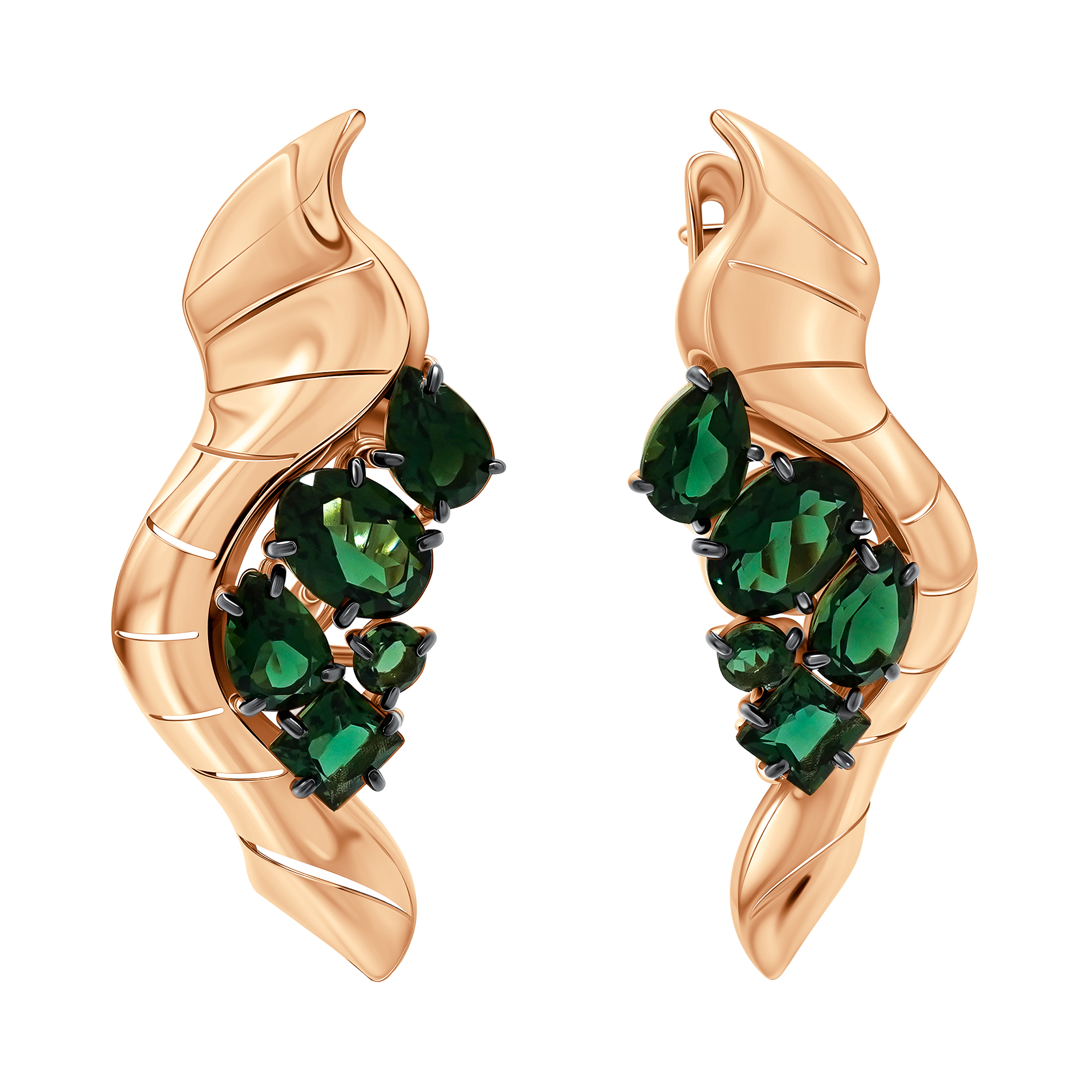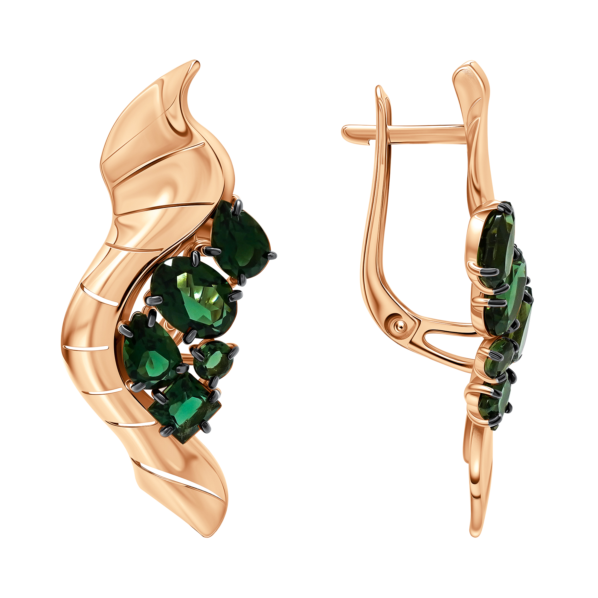 Серьги из золота с турмалинами и фианитами