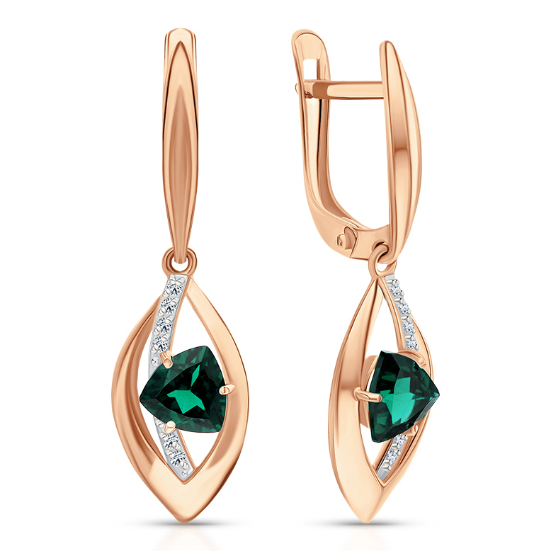 Серьги из золота с ситаллами турмалин и фианитами