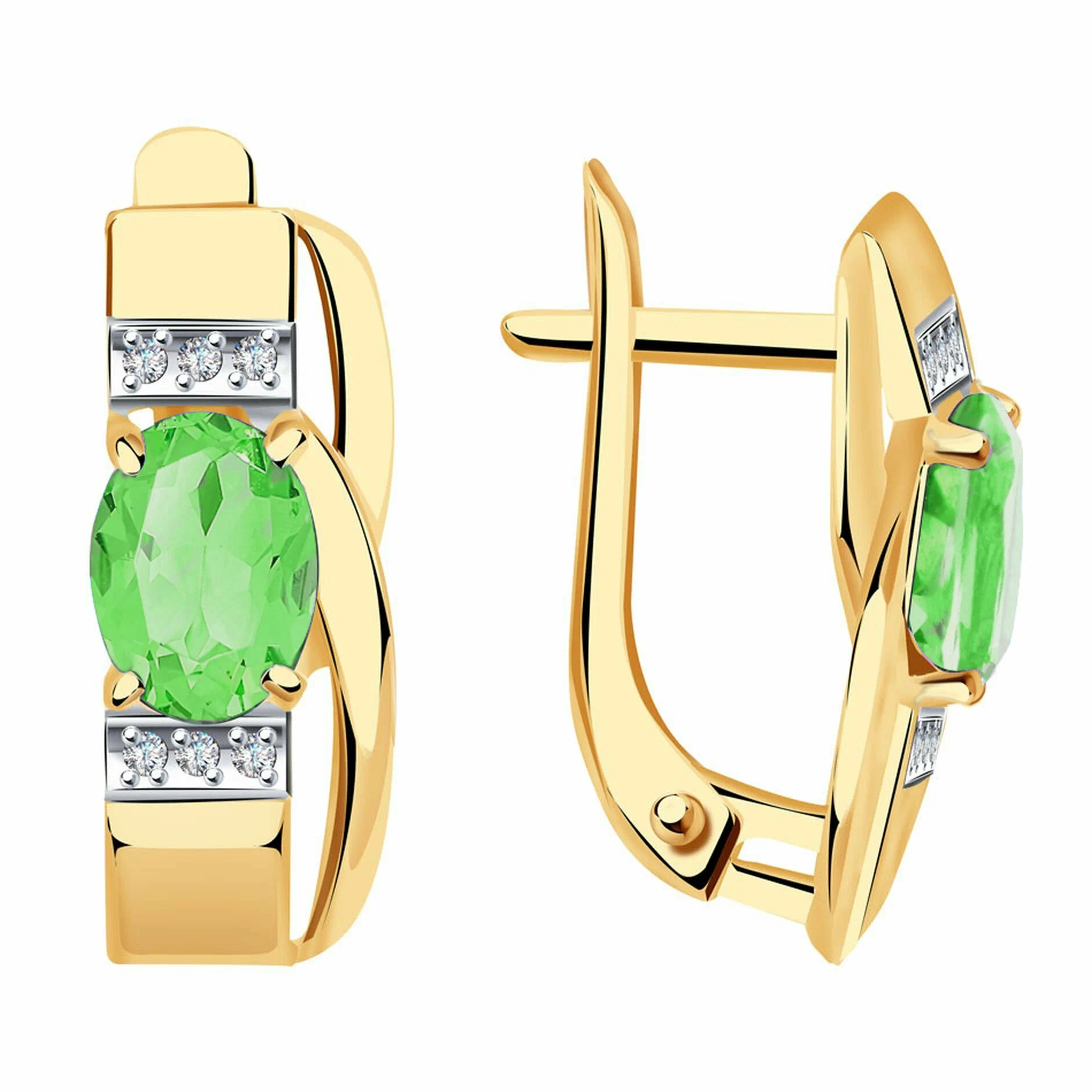 Серьги из серебра с хризолитами и фианитами