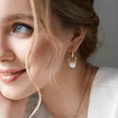 Серьги из серебра с позолотой, жемчугом и фианитами