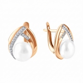 Серьги из серебра с жемчугом и фианитами